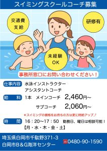 今回はスイミングスクールコーチ募集のお知らせになります!